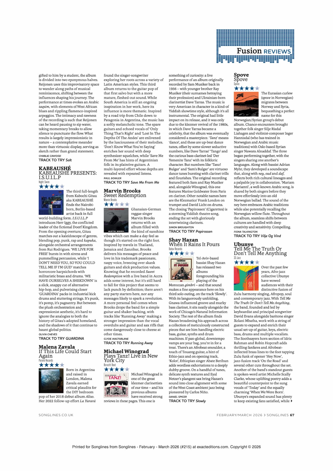 Songlines Reviews Tanz!